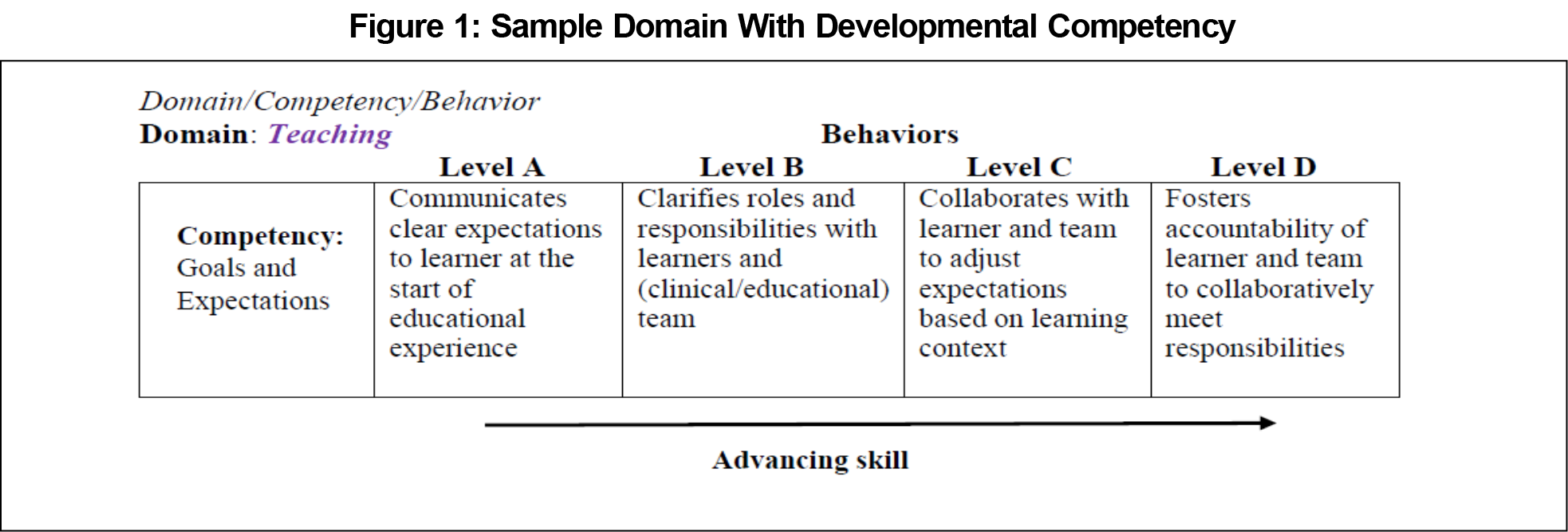 The faculty competencies were collaboratively created by the STFM Faculty Competencies Special Projects Team, supported by a needs assessment and literature review. An example domain is shown in Figure 1.