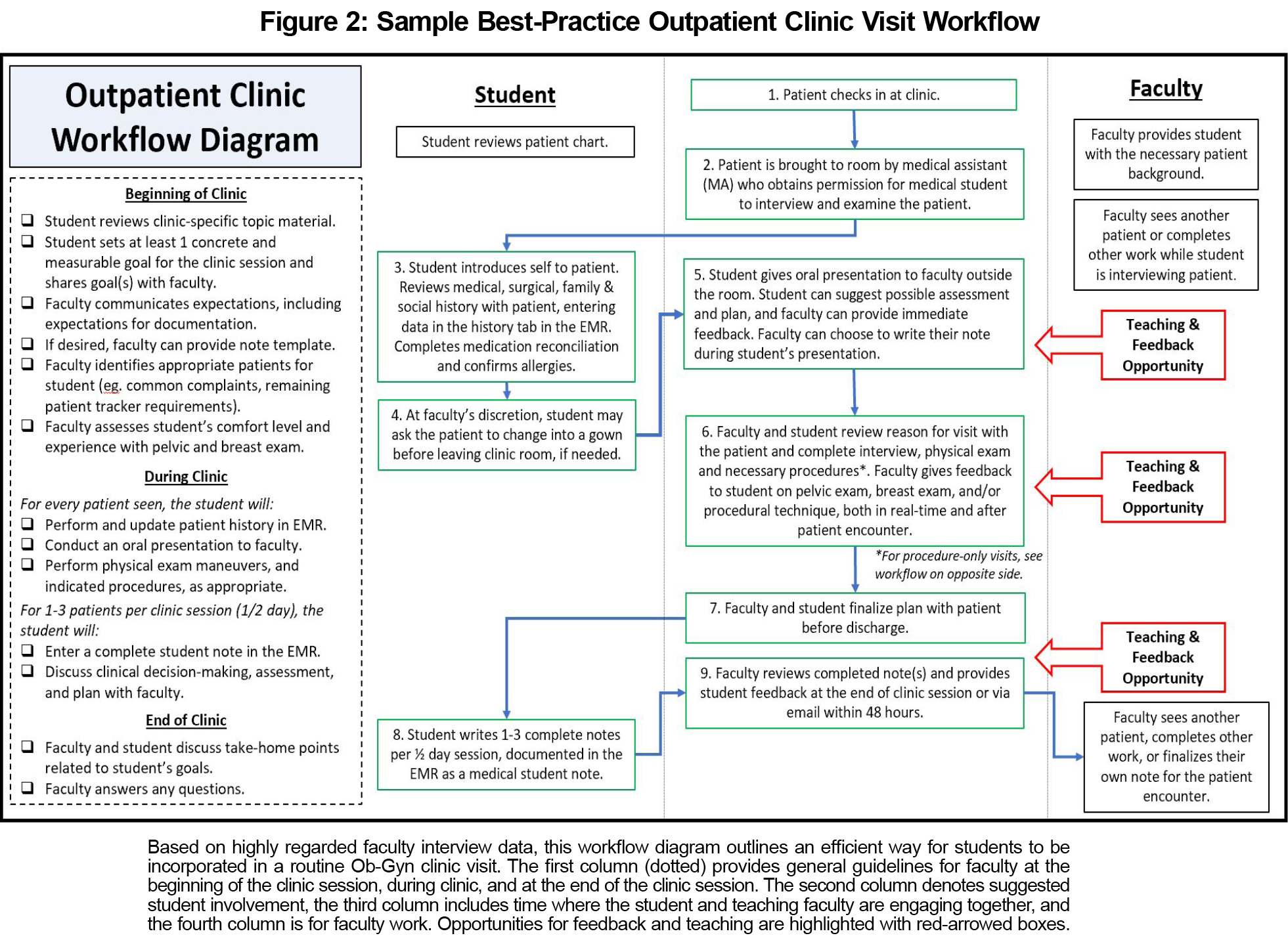 Individual interviews with the five Ob-Gyn faculty yielded multiple themes and were used to design sample, best-practice clinic workflows (Figures 2 and 3):